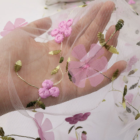 Tecido de renda bordado, lindo rosa e branco 3d de alta qualidade, corte a laser, bordado, para casamento